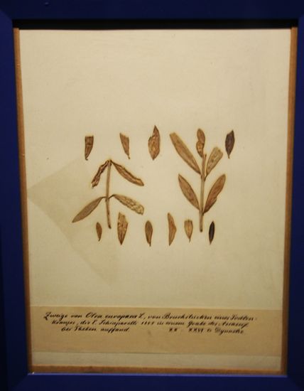 von Bruchstücken eines Totenkranzes, die E. Schiaparelli 1885 in einem Grab des Assassif bei Theben auffand.