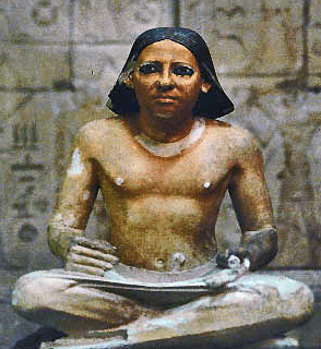 Diese Statue ist die älteste bekannteste Darstellung und gehörte dem Prinzen Kauab, einem Zeitgenossen Cheops.
