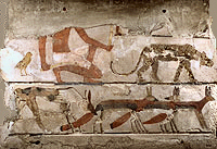 In diesem Grab sollen schöne Darstellung von Wüsten-Jagdszenen, einer Vogeljagd und wie oben zu sehen von Landarbeiten dargestellt sein.