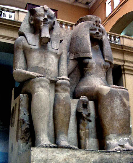 Statuengruppe von Amenhotep III. und seine Frau Teje