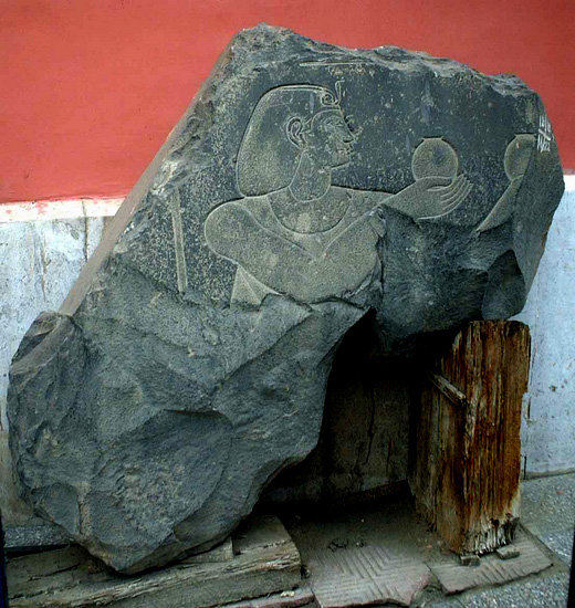 Fragment mit Relief Pharao beim Opfer darbringen von Wein oder Wasser