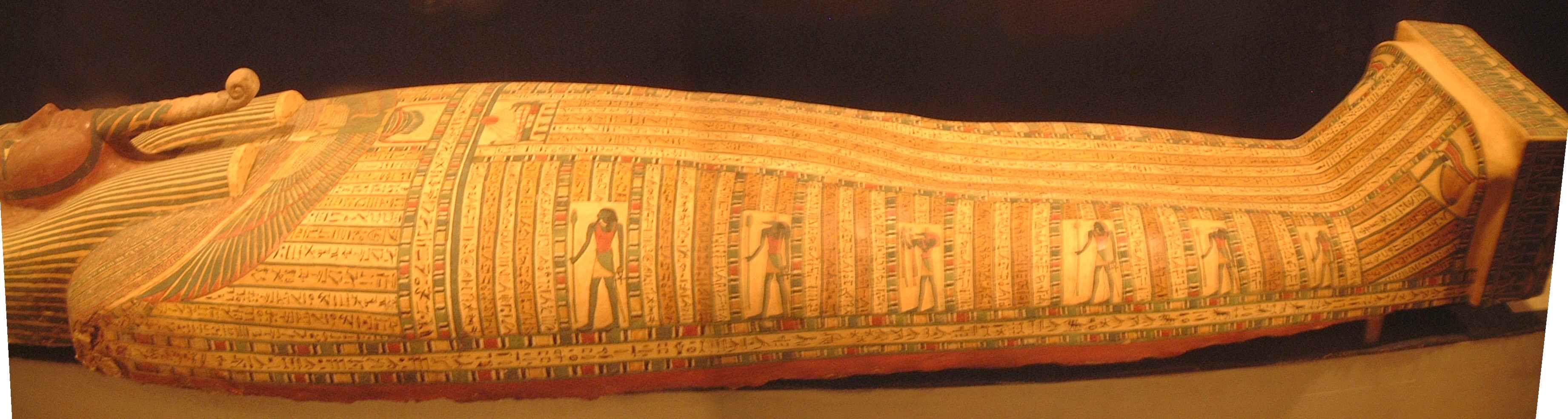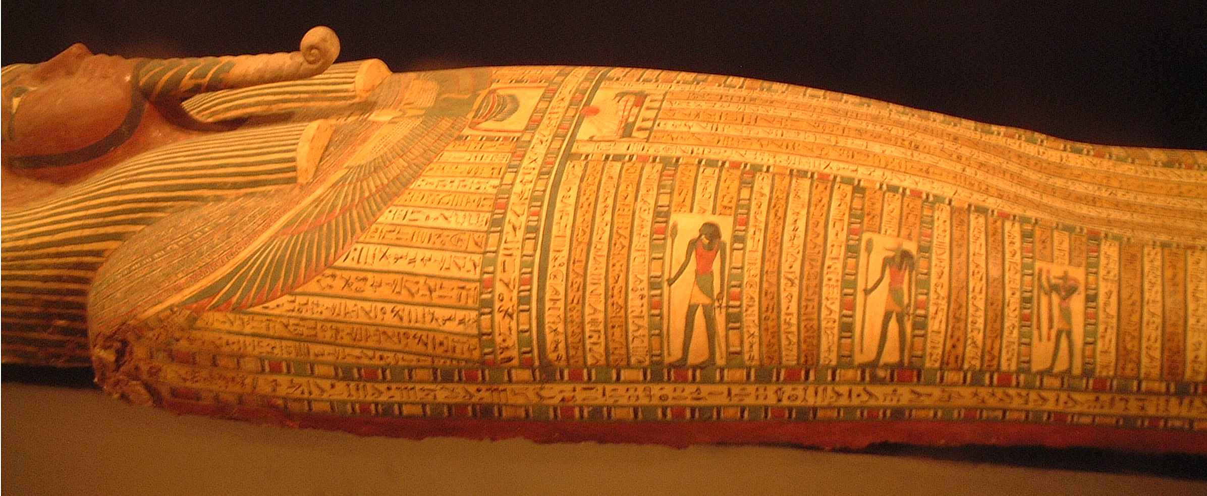 Die ägyptischen Mumien wurden häufig mit einer festen äußeren Hülle umgeben, die aus mit Stuck getränkter Leinwand bestand und heute als Kartonage bezeichnet werden.