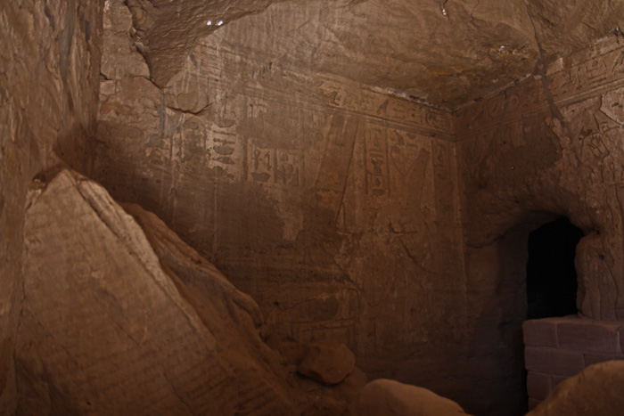 nicht zu erkennen) dem Amun von Karnak die Maat dar. Amun sitzt auf einem Thron und trägt die Amun-Federkrone. Hinter Amun befindet sich seine "Mutter" Abar. |