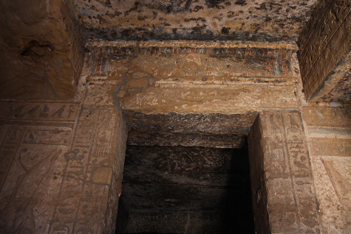 Zentralsanktuar. Der Architrav ist nach ägyptischem Stil mit einer geflügelten Sonnenscheibe dekoriert. |