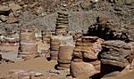3 Ein Hemispeos ist ein Felsheiligtum welches im hinteren Teil im Felsen eingebaut ist und vorne aus freistehender Architektur besteht. | |||||||||||||||||||||||||||||||||||||||||