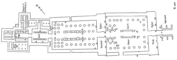 Ägypten zurück. Das Ipet-sut (auserwählter Ort) bildete das Zentrum des Amun von Napata, wurde unter Tutanchamun / Haremhab begonnen, später von Sethos I. und Ramses II. weiter ausgebaut. Die nubischen Könige Pije und Taharqa bauten weiter, ebenso erfolgten unter den Meroiten mehrfache Wiederherstellungen. Ausgegraben wurde der Tempel 1916 von Reisner und von ihm auch weitgehend publiziert. Wie bereits erwähnt finden seit 1968 durch T. Kendall weitere Ausgrabungen statt. Hierbei konnte festgestellt werden, daß ein kleinerer ursprünglicher Tempel der möglicherweise aus Nilschlammziegel bestand durch Thutmosis III. (?) errichtet wurde. In späterer Zeit wurde dieser Tempel überbaut bzw. abgetragen und durch einen neuen Bau ersetzt und zu Amenhotep IV. (Echnaton) / Akhenaten (1353-1335 v. Chr.) Zeiten in einen Aton-Tempel umgewandelt. Dieser Tempel wurde nach dieser Zeit von den folgenden Pharaonen übernommen und wahrscheinlich bereits durch Tutanchamun (1333-1324 v. Chr.) und folgend durch Haremhab bzw. Sethos I. teilweise umgebaut und wieder dem Gott Amun gewidmet. Die Talatblöcke aus dem alten Tempel wurden übernommen, auch die aus der Zeit von Amenhotep IV. (Echnaton)/Akhenaten, welche überarbeitet und so weit wie notwendig Amun wieder installiert wurde. Erweiterungen fanden dann unter Ramses II. (1290-1224 v. Chr.) statt. Danach erst wieder unter Pianchi (ca. 750-716 v. Chr.), der den Tempel zu seiner gegenwärtigen Größe erweiterte. Die Dekoration des Tempels wurde unter Taharqa und Tanutamen vervollständigt, die zum großen Teil durch ein Feuer 593 v. Chr. während ägyptischer Angriffe unter Psamtik II. (595-598 v. Chr.) zerstört wurde. Die letzte komplette Restaurierung fand Mitte des ersten Jahrhunderts n. Chr. durch das meroitische Königspaar Natakamani und Amanitore statt. |