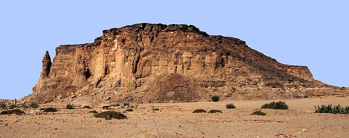 Sandsteinmassiv des Gebel Barkal aus der ansonsten flachen