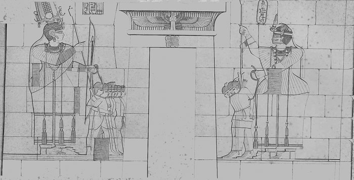 ![]() Pylon Umzeichnung aus Lepsius Denkmäler V Bl. 40 |