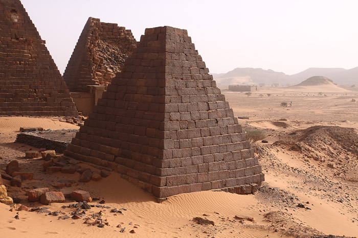viereckigen Basen. Die Pyramide selbst war abgetragen und die