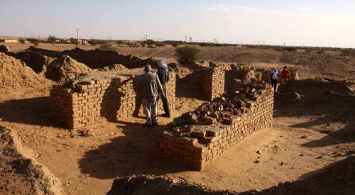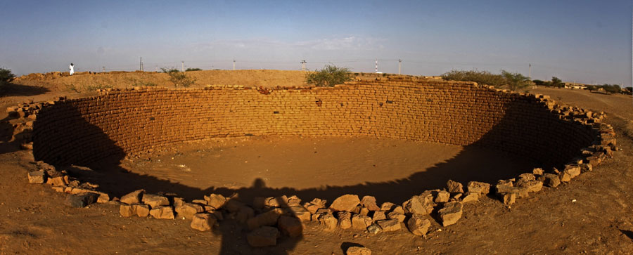 Ein rundes Gebäude mit einem Durchmesser von 20 m, von einer Ziegelmauer umgeben, 3,70 m dick und 5 m hoch, mit unbekannter Funktion befindet sich etwa 50 Meter südlich des Palastes. Es wird vermutet, das es ein Hafir gewesen sein könnte. | |||||||||||||