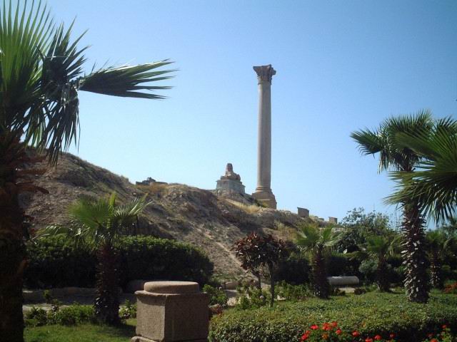 Die Pompejussäule ist mit ihrem korinthischen Kapitell annähernd 27m hoch, hat einen Durchmesser von 2,70 m und einen Umfang von 9 m, sie besteht aus rotem Assuangranit und ist das größte antike Baudenkmal der Stadt. | ||||||