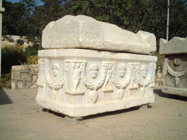Sie wurden samt ihrer Deckel aus Sandstein gehauen und mit Dekorelementen, wie Girlanden, Masken und Stierköpfen (Bukranien) versehen.