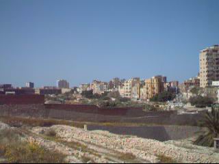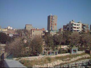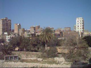 Das hügelige Gelände ist ungefähr so groß wie ein großes Sportstadion. Von hier hat man einen herrlichen Blick auf die Häuser von Alexandria. |