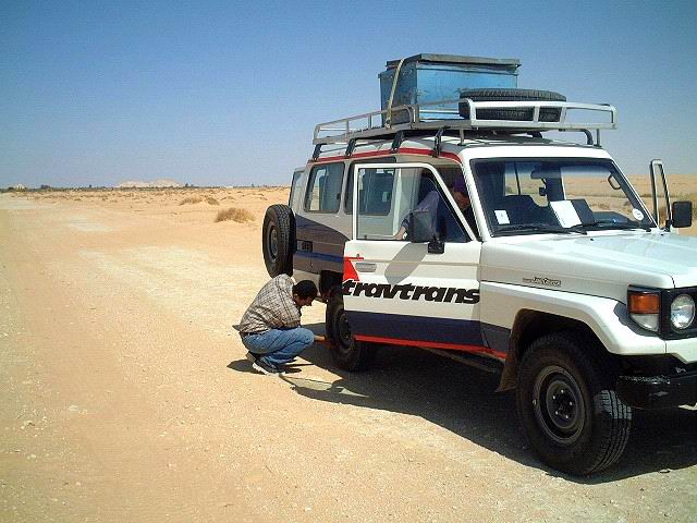 Stunde in der Sandwüste, da fuhr das Auto sich im Sand fest. Nix ging mehr