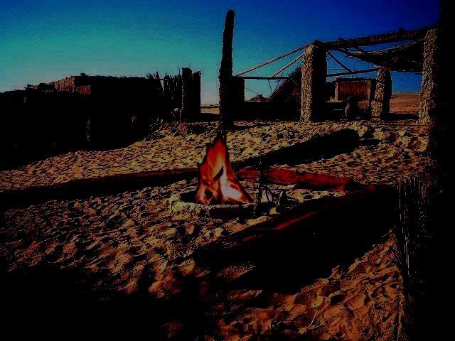 Als wir dann abends am Lagerfeuer saßen, führten sie vor lauter Freude uns den ganzen Abend ihre Tänze vor und sangen in ihrer eigenen Sprache wunderschöne Lieder. Wir erfuhren, daß die Oasenbewohner, es sind hauptsächlich Berber, die sich durch ihre eigene Sprache Siwa (ein eigenständiger Berberdialekt) von den Ägyptern unterscheiden. |