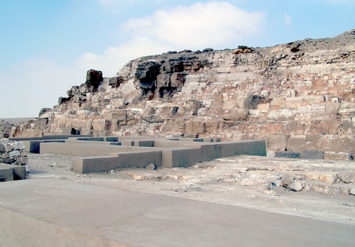 Seitenlänge ca. 100m betrug und eine geplante Höhe von 92m. In den letzten Jahren wurde bei Grabungen der restliche Schutt ganz beseitigt, ein Sarkophag wurde dabei, entgegen früherer Vermutungen, nicht gefunden. |