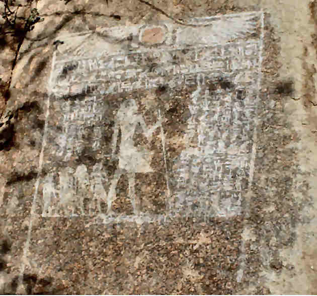 In Assuan findet man unter anderen zahlreiche Graffiti mit Nennungen des Namens von Mentuhotep Nebhepetre, wie dieses Felsinschrift. | |