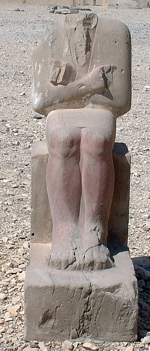 und bemalte Sandsteinstaue gefunden, die den König in einen kurzen