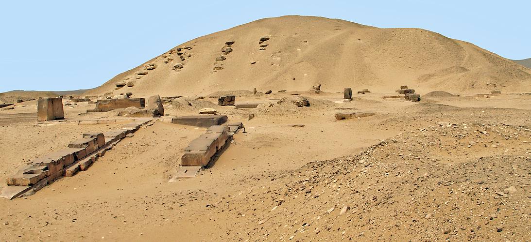 | Wie bei seinem Vater Amenemhet I. bestand die Pyramide aus einem mit Sand