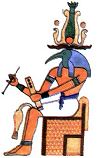In der 18. Dynastie trugen 4 Könige den Geburtsnamen Thutmosis (Königstitulatur). Der Name bedeutetet "Thot, der Gott der Weisheit und des Wissens, ist geboren". Aus diesem Grunde wird der Gott Thot auch meist mit Schreibzeug, Binse und Palette dargestellt. Er erscheint mal mit Ibiskopf, selten auch als Pavian. Am meisten ist er zu sehen beim Totengericht, wo er das Ergebnis bei der Herz-Wägung aufschreibt. |