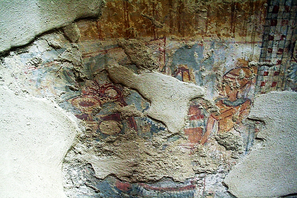 Südwand, rechts vom ehemaligen Eingang ist die Dekoration nur