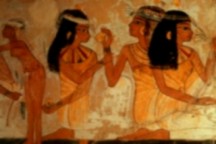 Die Damen haben Duftkegel in der Hand und bestäuben sich damit.