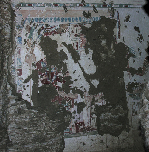 Seite der Querhalle vom Eingang zur Grabkammer erkennt man noch den