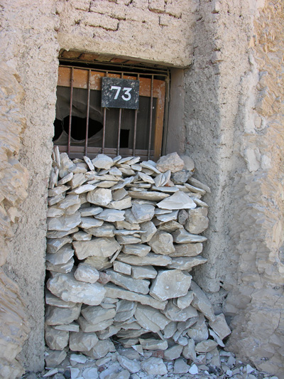 ursprünglichen Fassade, sie wird von einem Pylonstumpf des Grabes TT 72