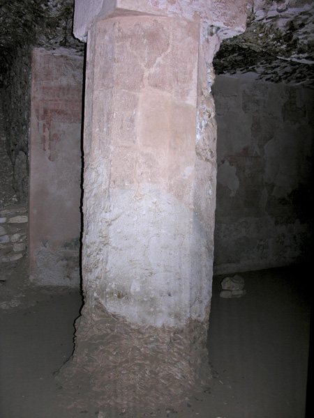 Vier einreihige Säulen tragen die Decke im Innenraum.