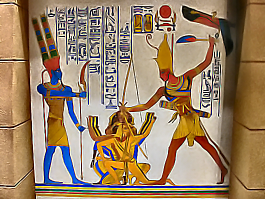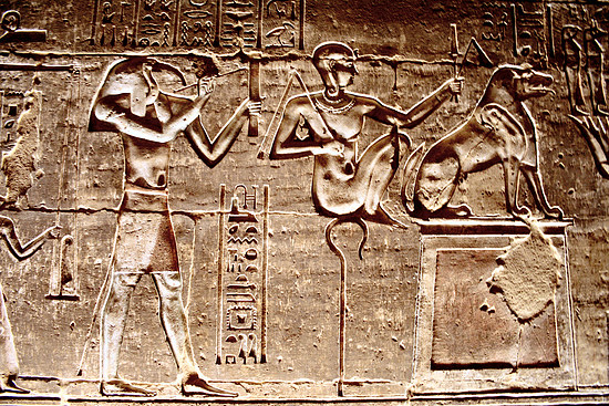 der noch erhaltenen Reliefdekors pharaonischer Baudenkmäler begegnet man