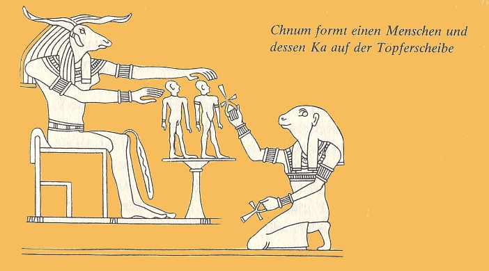 Die Hauptseele war der "Ka", die Körperseele, eine erdverbundene Wesenseinheit, die in jedem Menschen wohnt. Dieser blieb nach dem Tod im Menschen zurück und ernährte sich von den reichhaltigen Opfergaben. Das Herz galt als Sitz des "Ka", deshalb achteten die Einbalsamierer darauf, daß es an seinem Platz unbeschädigt blieb, mußte es sich doch vor dem Totengericht verantworten. |